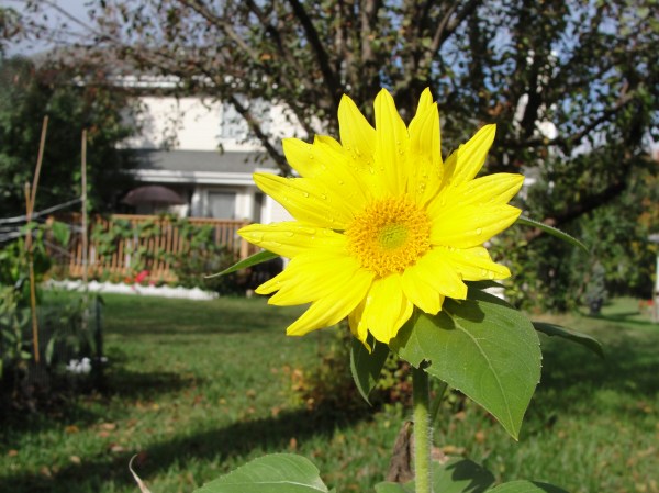 在菜园子旁边自生自长的小向日葵,估计是邻居家的种子被兔子或小鸟带过来的。