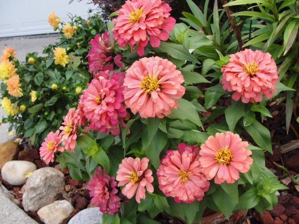 一枝花的孩子们,这个一年生的花我家每年都种,秋天是开花的旺季,英文名叫zinnia, 今天终于知道它的中文名叫–百日草,百日花,顾名思义,花开百日。有多种颜色,分长杆和短杆2种,我这个是短杆的,不宜插花,但花头多。后面黄色的是大丽菊,也是我年年必种的。