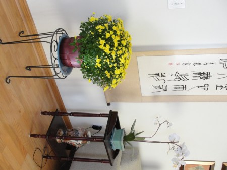 中秋节时花几美元买一盆放在家里,很有点中国风的味道,等花儿全部谢后,将败花头剪掉,然后埋到后院,来年怕便是“满城尽带黄金甲”了。