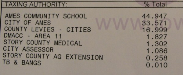 从上图可以看出:在Iowa 州一年中所征收的物业税总数中,房屋主人(Home owners)缴纳了43% ,占最大比例。 农场主占22%,商业和工业占31%,公用事业包括铁路等占3%左右。