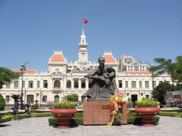 胡志明市(旧称西贡)市政厅前胡伯伯的雕像。