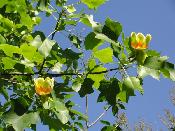 这种树木的英文名称叫郁金香树(Tulip Tree),因为它的花型像极了一朵朵开在树上的郁金香。而我们东方人则是以树叶的形状(鹅掌)来命名的,从这里也可以看出东西方文化的一点差异。