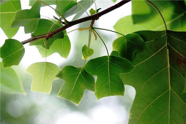 从严格的分类来看,这种树木现分两个种,一个就是我家后院的这种,中文叫北美鹅掌楸(拉丁名Liriodendron tulipifera),大名 Tulip Tree。 还有一种就是分布在我国的中国鹅掌楸(Liriodendron chinese),它们被称作活化石植物,是世界上最珍贵的树种之一。北美鹅掌楸与中国鹅掌楸在叶子形状上略有不同: