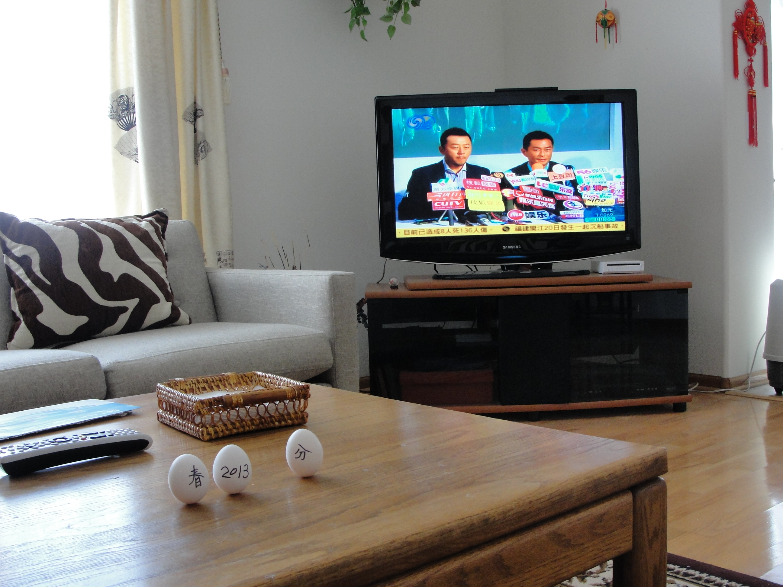 我们3人吃过年夜饭,就到了与全国人民一起看春晚的时间了。其实自从我家10年前装了卫星天线后,我们在大洋彼岸也能与全国人民同步看春晚的,只是早上6 点就要起床(14小时时差),如果要上学上班只能看重播的,更重要的是,在中国和美国看,心情和气氛是大不一样的。至于今年春晚节目的质量如何,众口难调,这里就不多说了,最关键的是,能陪着老父亲一起看春晚就是幸福的。